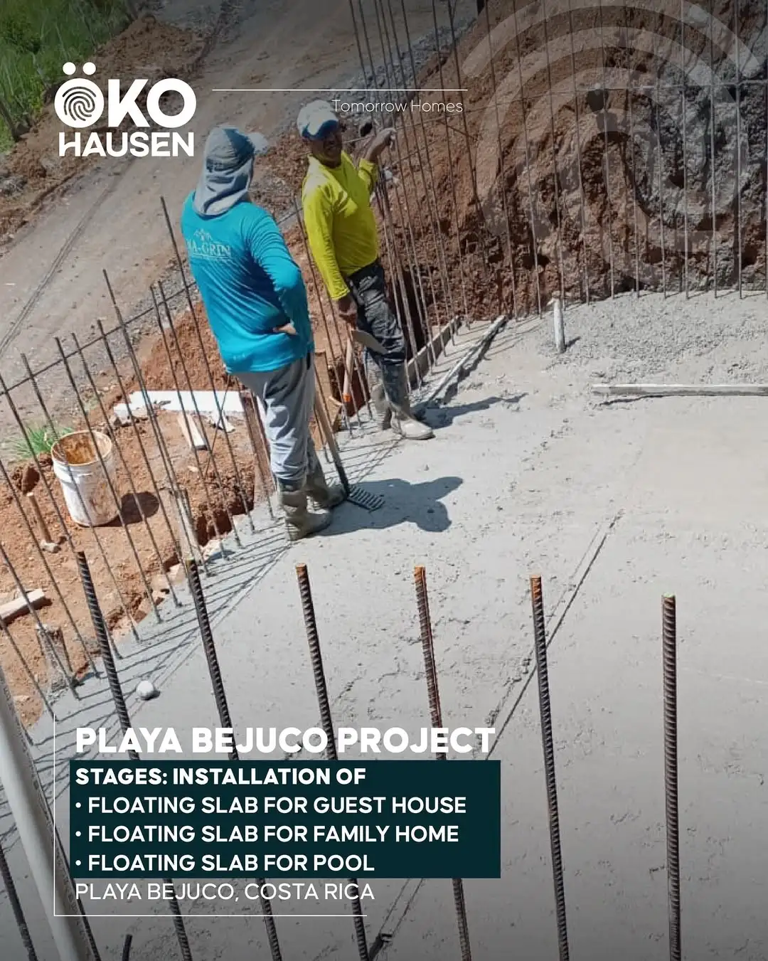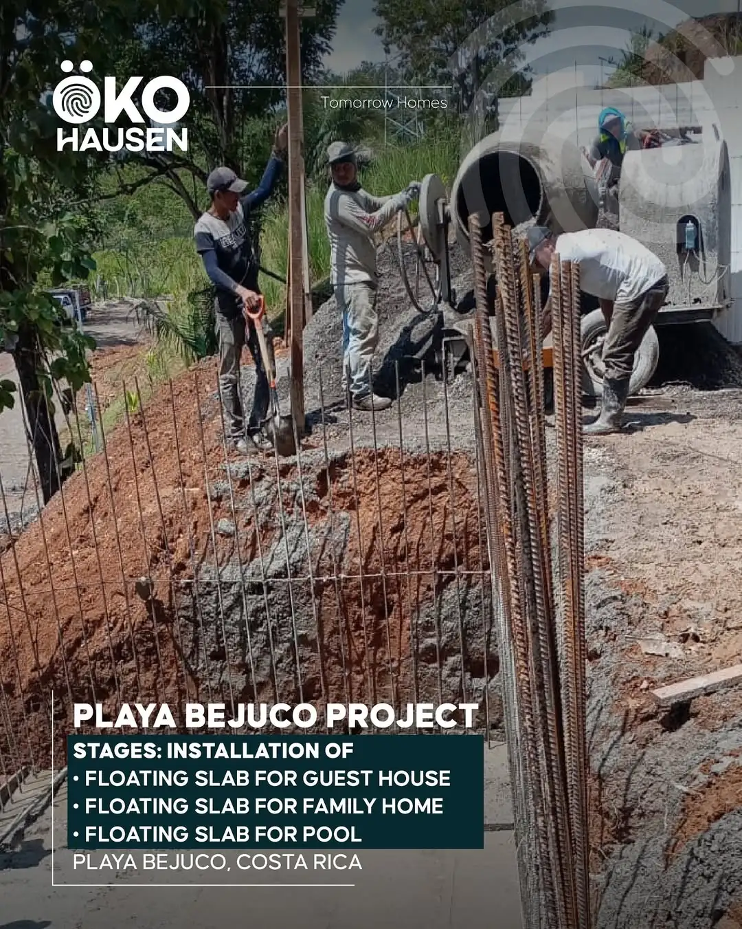 At Playa Bejuco, we’re moving forward with three simultaneous stages — pouring the slabs for the guest house, family home, and pool. Each structure is designed to harmonize with the tropical landscape, combining innovation, precision, and sustainability in every detail.